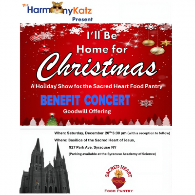 "I'll Be Home for Christmas"December 20, 2025Sacred Heart Basilica - SyracuseThe Harmon Katz will be performing at the Basilica of the Sacred Heart of Jesus in Syracuse to benefit the Basilica's Food Pantry. ...