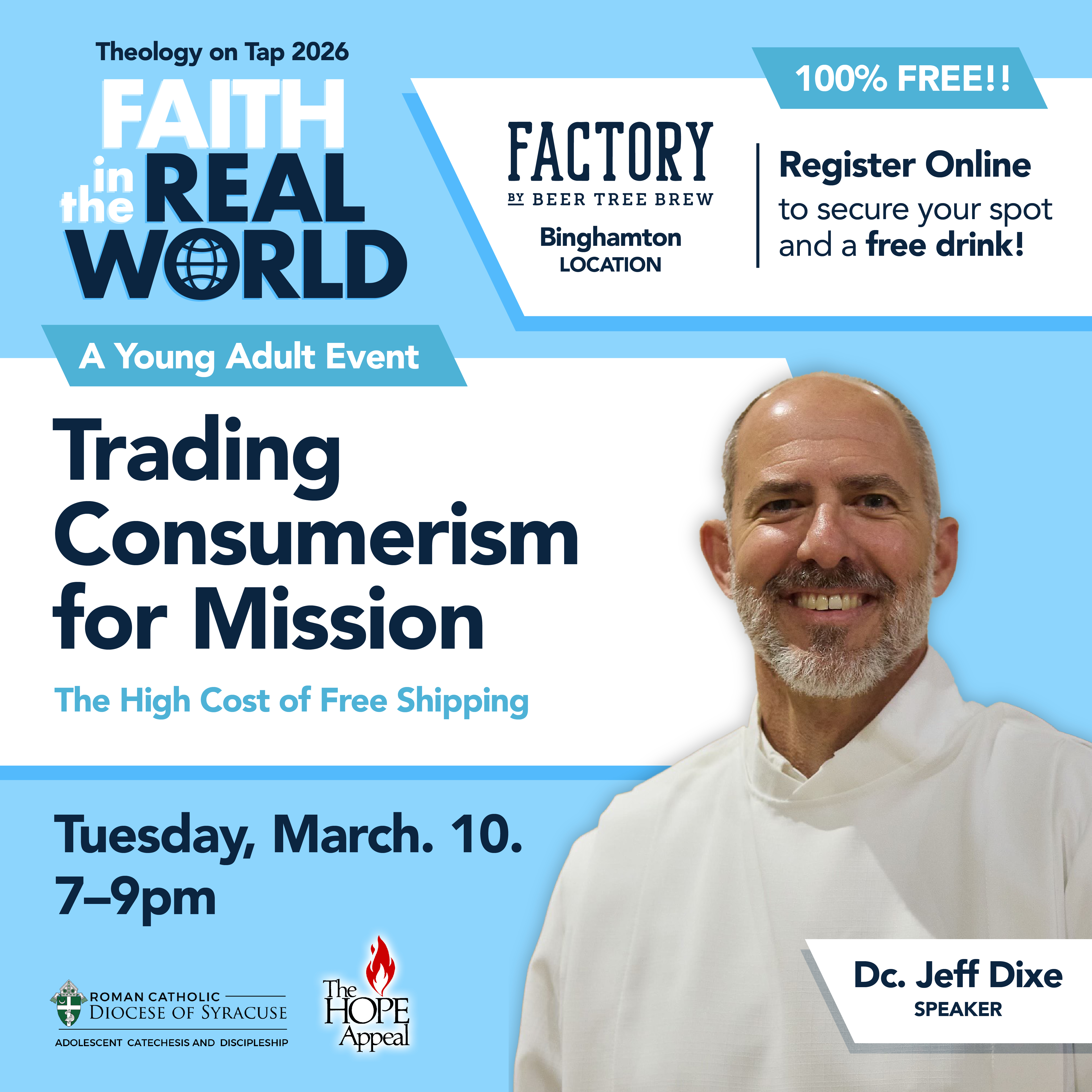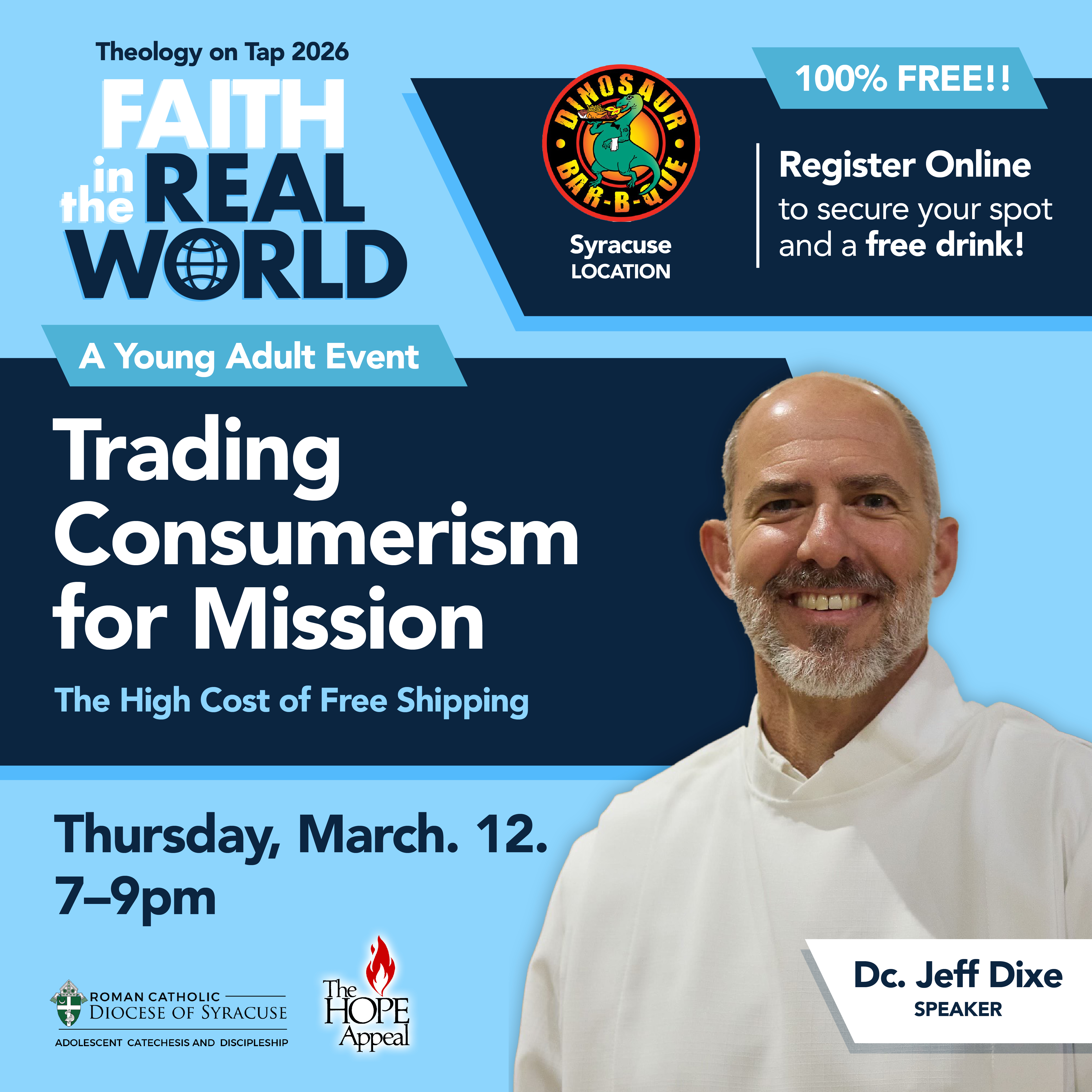 Holy Hour and Trivia NightFebruary 21, 2026Holy Family Church - Syracuse"Holy Hour and Trivia Night" - Westside Catholics invite young adults to join our Holy Hour and Trivia Night! It will take place February 21, 6PM at Holy Family Church! Please do not hesitate to call Gabriel at 315-488-221. Bring your friends & see y ...