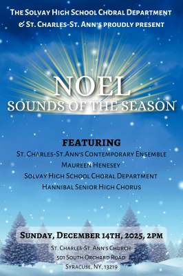 Noel: Sounds of the SeasonDecember 14, 2025St. Charles-St. Ann ChurchJoin the St. Charles-St. Ann's parish community and the Solvay High School Choral Program as they present their 3rd Annual Advent Concert. Entitled "Noel: Sound of the Season," the concert will feature the music of Solvay High School's vocal ensembl ...