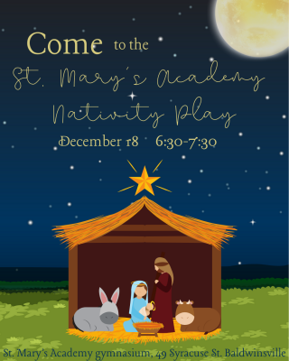The Nativity StoryDecember 18, 2025St. Mary's Academy - BaldwinsvilleWe invite you to watch the students of St. Mary's Academy, led by the St. Mary's Academy Thespian Club, lovingly perform the beautiful and moving narrative that tells of the Nativity. Come share in a moment of quiet beauty and spirit. ...